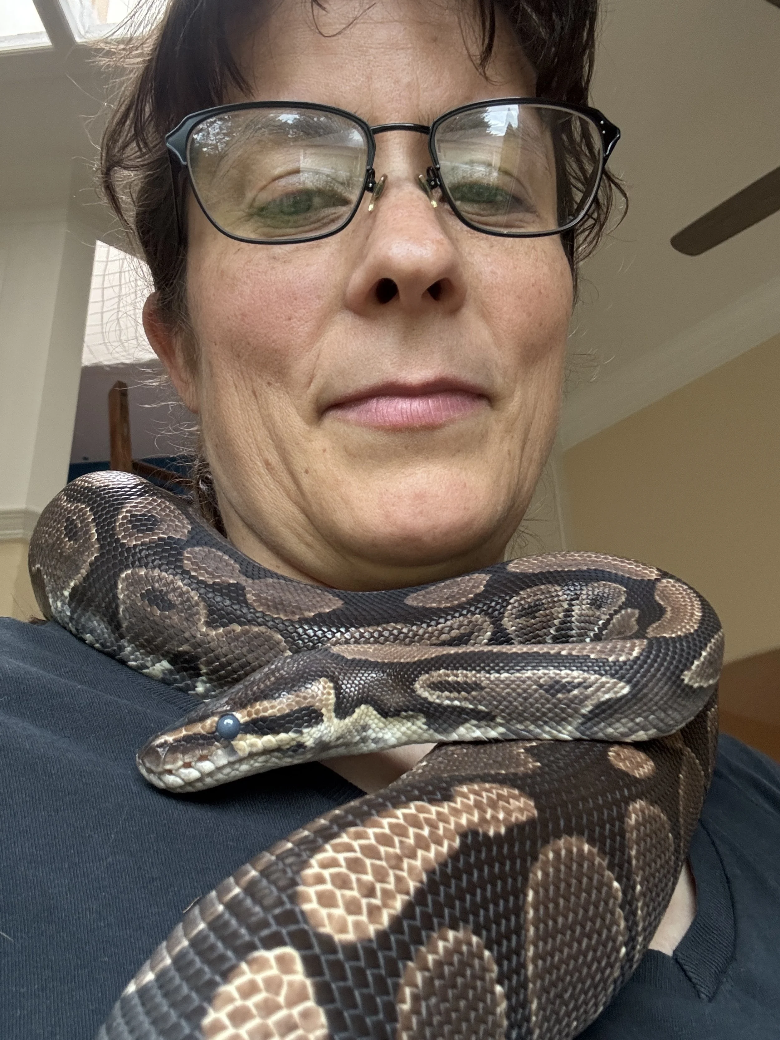 Connor is a male ball python, approximately 2 years old. Connor is sweet and gentle, just a kind soul with love to give. He likes to snuggle. He’s easy going and a good eater.